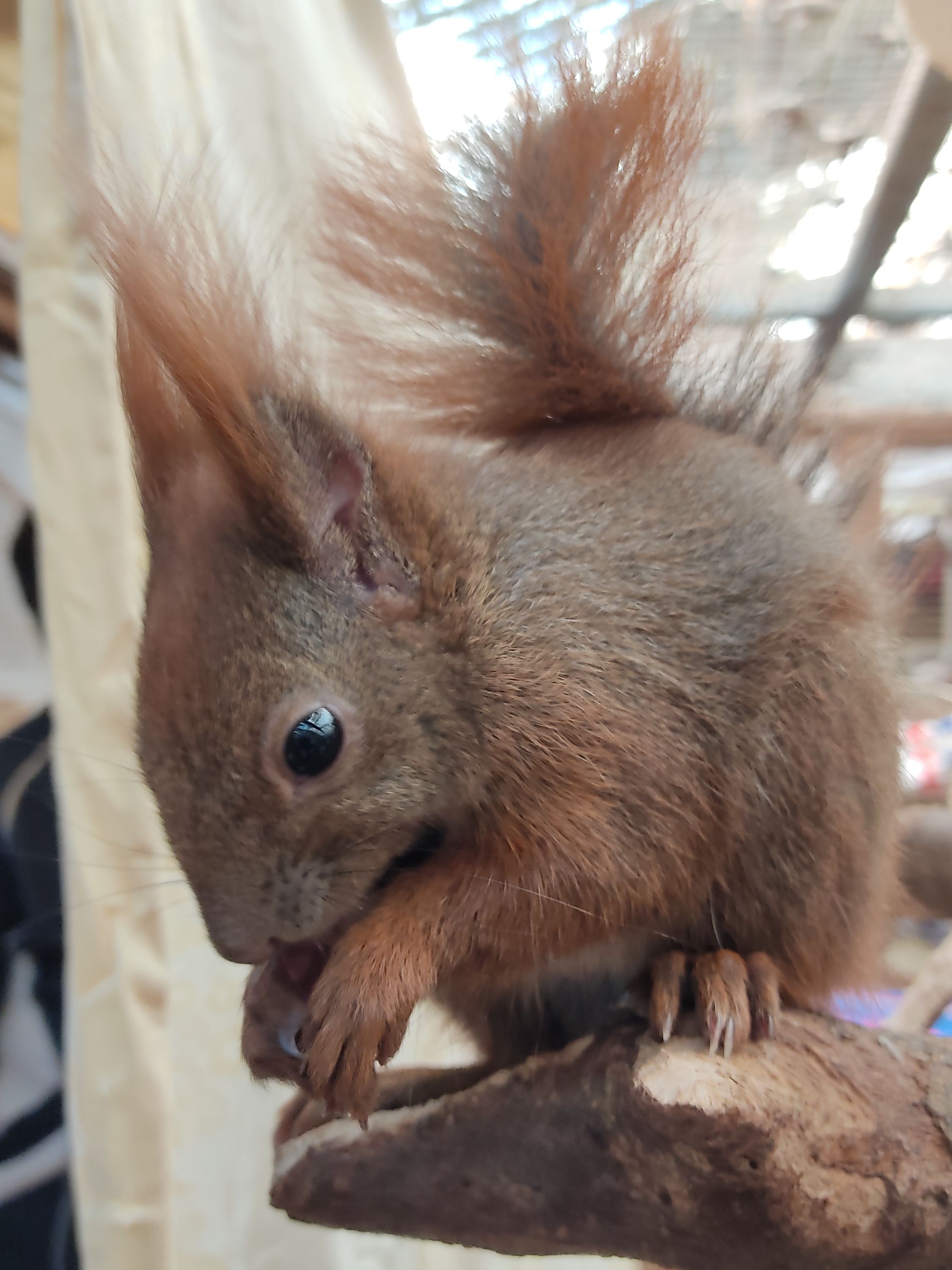 Nun war es soweit. Die Textilien in den Gehegen mussten wieder gewechselt werden und dabei konnten wir mit anpacken. Bei der Arbeit gab es auch neugierige Eichhörnchen, die uns inspizierten und sich mit Nüssen füttern ließen. Ein paar Impressionen möchten wir hier mit Ihnen teilen.