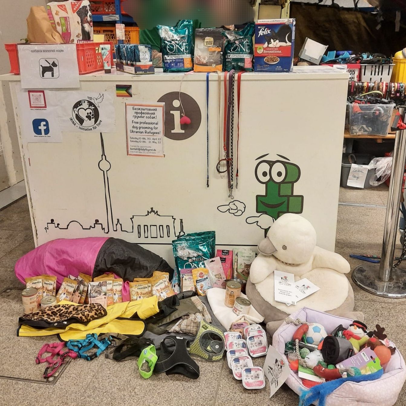 Jeden Tag erreichen ukrainische Flüchtlinge Deutschland über den Berliner Hauptbahnhof. Für diejenigen, die mit ihren Haustieren ankommen, steht seit März jeden Tag die IRINA ~ Initiative für Tiere bereit, um mit Sachspenden und wichtigen Informationen zu helfen. Wir freuen uns, IRINA mit Sachspenden unterstützen zu können! Am Pfingstwochenende brachten wir zwei Kartons voll mit Leinen, Geschirren, Pflege- und Spielutensilien, Regenmänteln, Bettchen sowie Textilien zu ihnen. Natürlich waren auch Dutzende kleiner Abpackungen Futter und Leckerlis für die Vierbeiner enthalten.