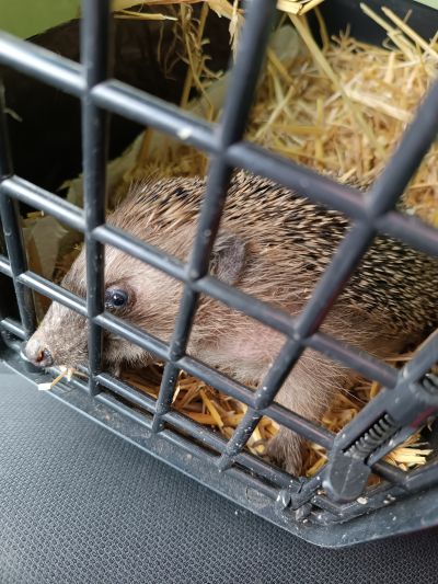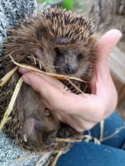 Es ist soweit, der kleine Igel wird abgeholt aus der Igelrettungsstation. In die kleine Transportbox wird etwas Heu gepackt, damit er sich einkuschel…