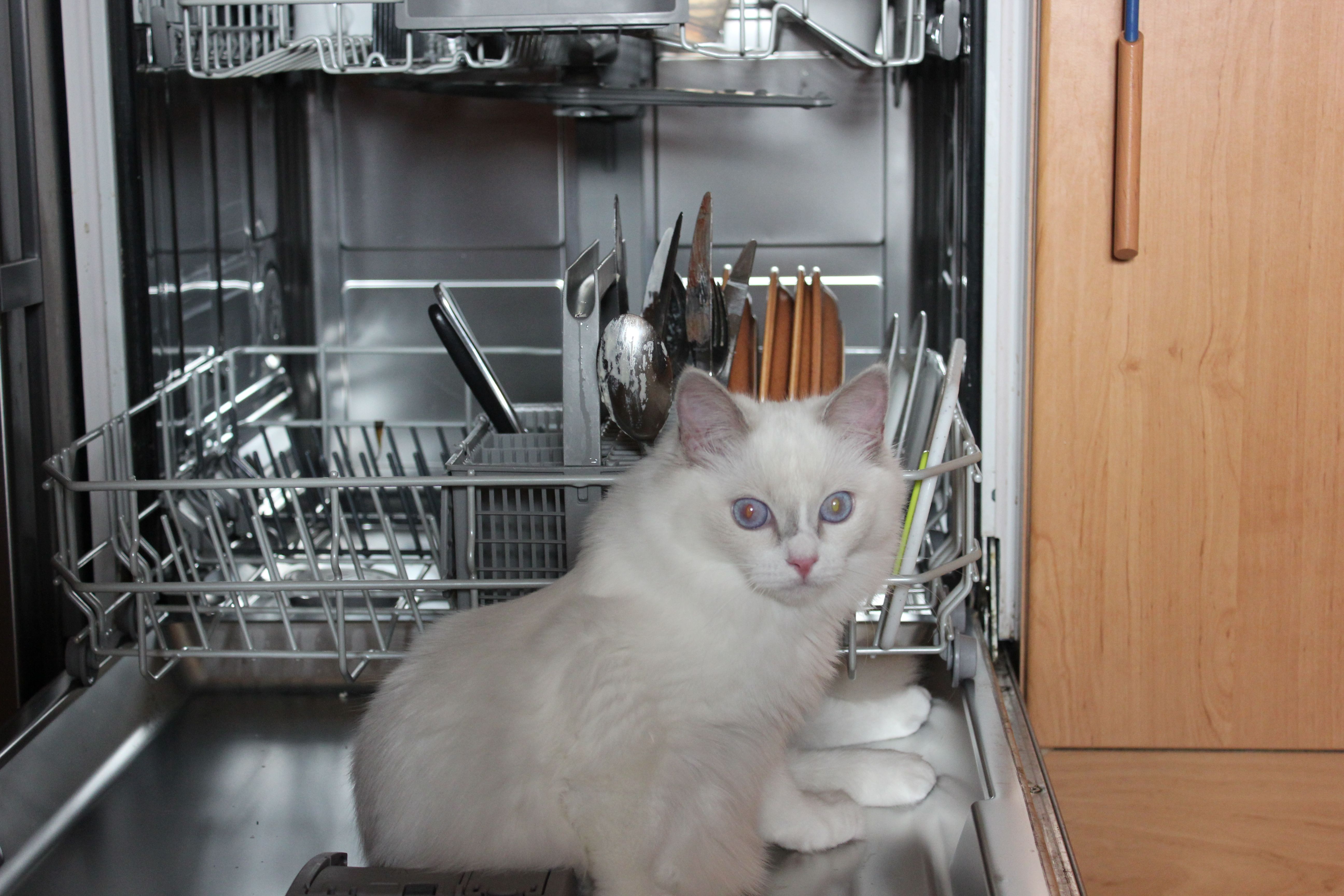 Für uns Zweibeiner bieten sich durch diesen ungestümen Wissensdrang tolle und oft unerwartete Momente. Wir beobachten gespannt, was die kleinen Fellnasen als nächstes aushecken und für sich entdecken. Wenn wir Glück haben, können wir sogar das ein oder andere Foto als Erinnerung an die wilde Zeit unserer tierischen Begleiter schießen. Wie zum Beispiel diesen Schnappschuss von der Entdeckung des Geschirrspülers.
