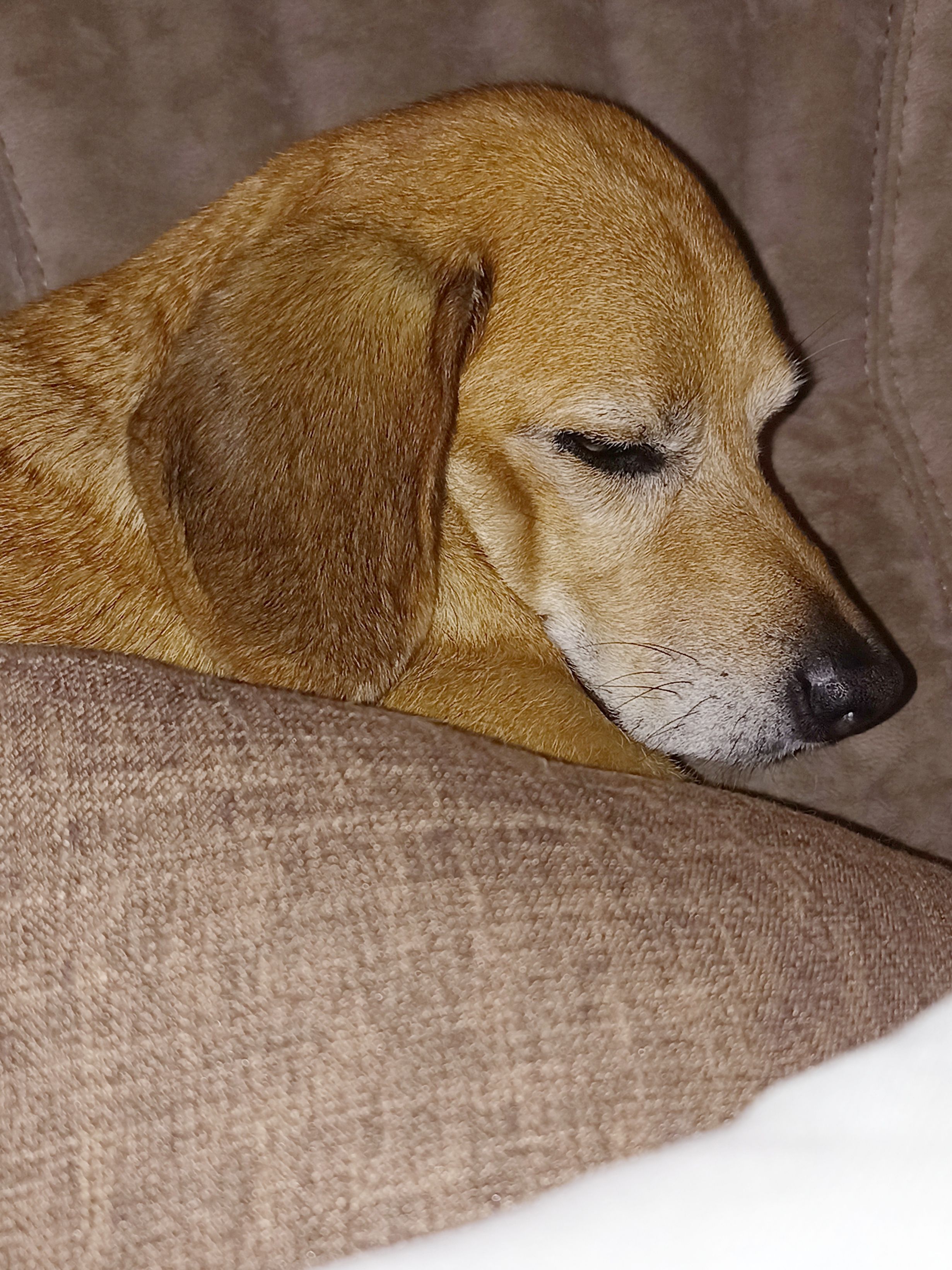 Diese Dame auf dem Bild versteckt sich auch gerne mal. Außerdem verbindet sie diese Leidenschaft mit einer anderen – dem Schlafen. So hat man manchmal zwischen allen anderen Kissen ein zusätzliches „Hundekissen“ auf dem Sofa liegen.