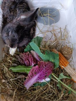 Als unerfahrene Kaninchenhalterin ist die richtige Futterzusammenstellung eine Herausforderung. Vor allem weil die Tierärztin eindringlich von einer zu starken Abweichung zu seinem bisherigen Futter warnte, um Stress zu vermeiden.
