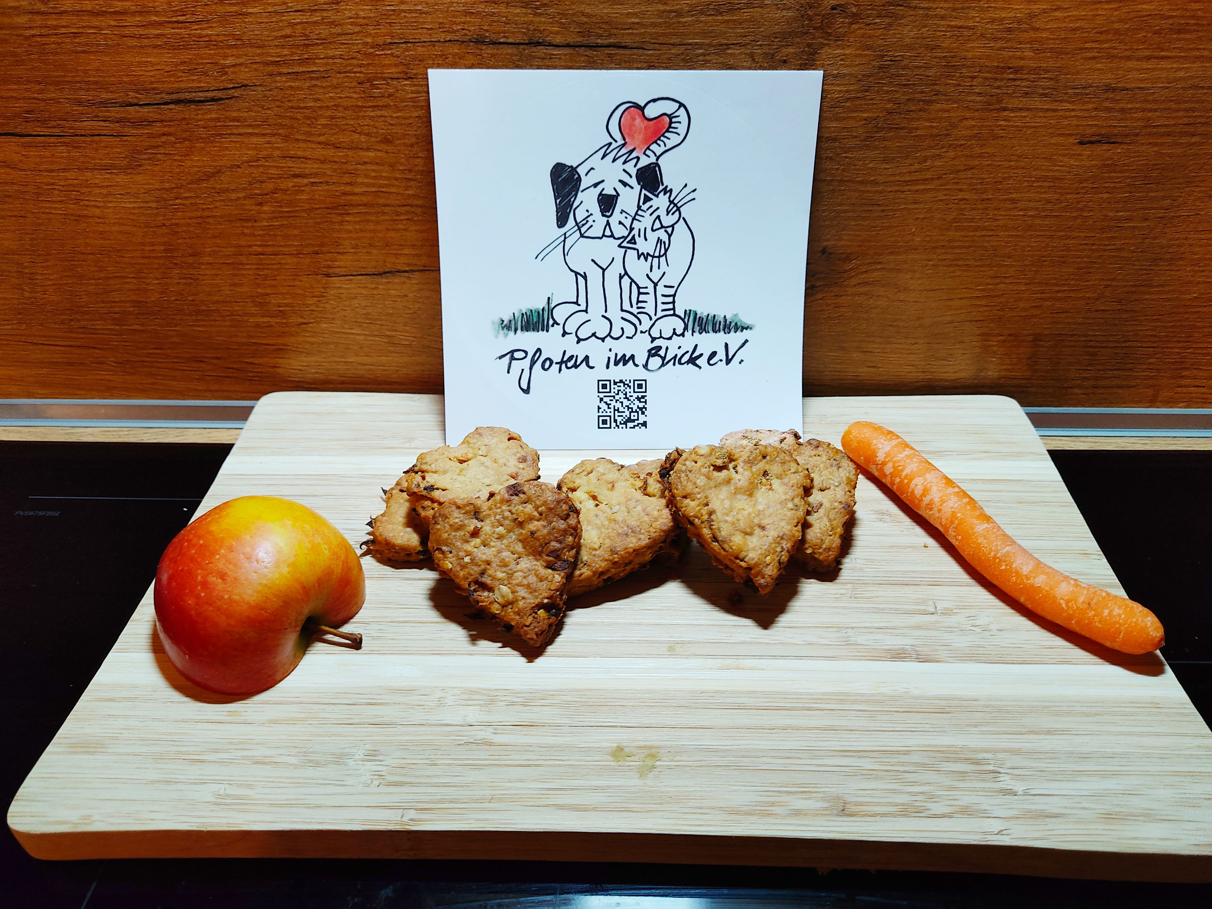 Möhren und Apfel liefern richtig viele Vitamine, Haferflocken enthalten wertvolle Mineralstoffe und Kokosöl ist reich an wertvollen Fettsäuren. Ein gesunder, eher süßer Snack für unsere Vierbeiner. Wer will kann die Kekse noch zusätzlich mit etwas Honig verfeinern.