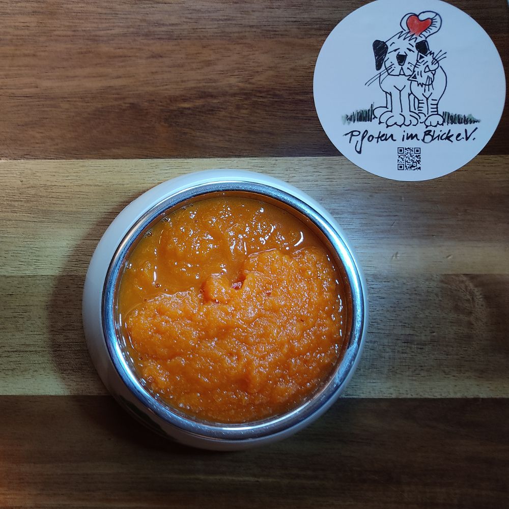 Die Suppe lässt sich sehr gut portionsweise einfrieren und bei Bedarf schnell in der Mikrowelle auftauen. Achtung, bitte prüfen Sie immer vor dem Füttern die Temperatur!