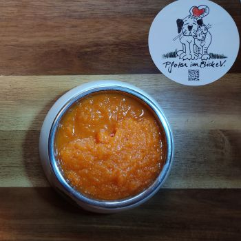 500 Gramm geschnittene Möhren in 1 Liter Wasser mindestens 90 Minuten kochen, anschließend pürieren