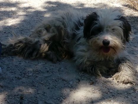 Offensichtlich suchte er menschliche Nähe. Wir gaben ihm Wasser und etwas zu fressen. Sein eigentlich hübsches Fell war furchtbar zottelig und verfilzt. Sicher irrte er schon seit längerem allein umher. Wie kann man nur einen so lieben und vertrauensvollen Hund im Stich lassen?