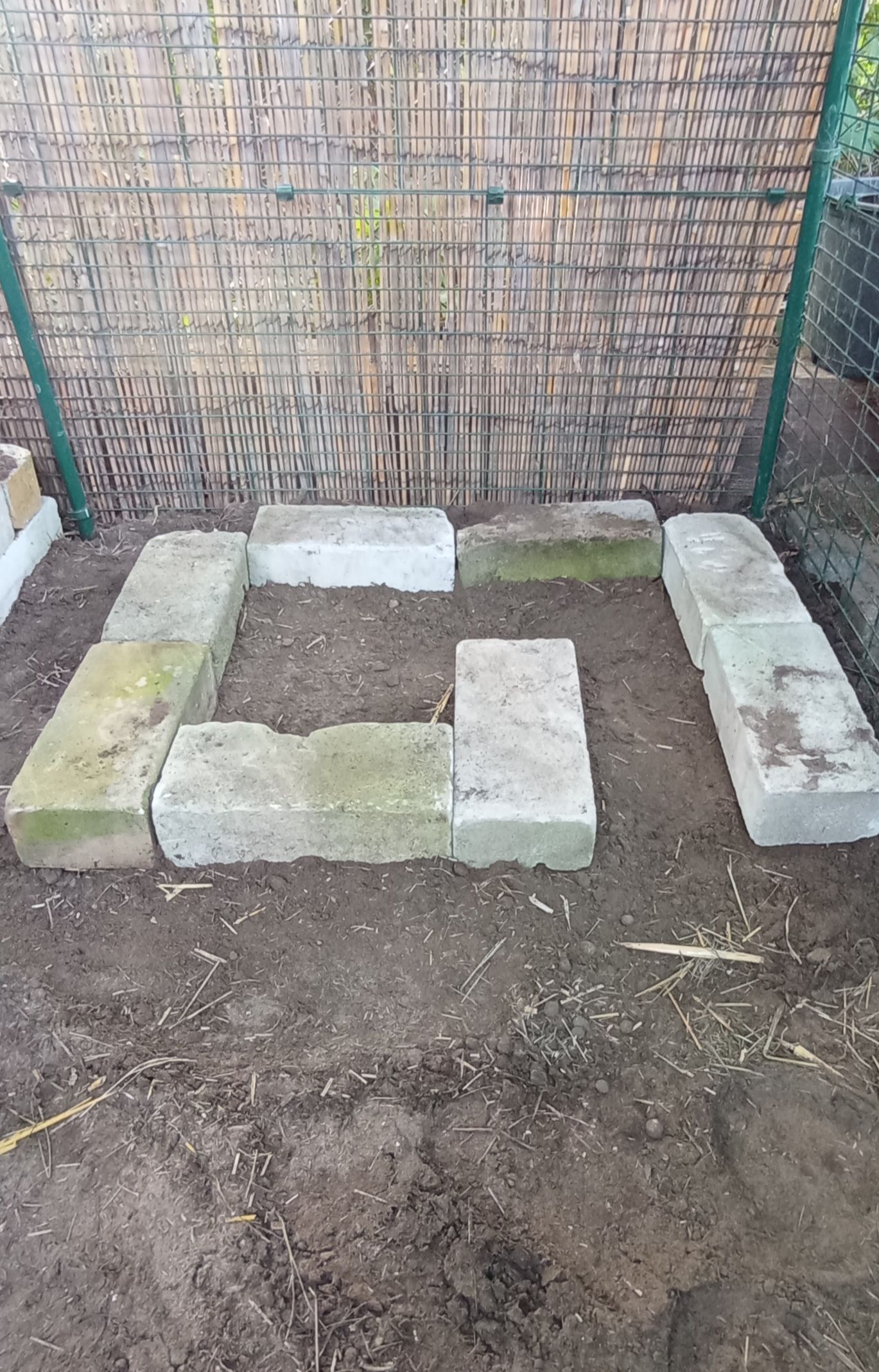 Die Mauersteine werden in einem "G" angeordnet, sodass ein schmaler Eingang entsteht, der den Schlafbereich zusätzlich schützt. Je nach Steingröße stapelt man 2 bis 3 Reihen und deckt das ganze mit einer Stein- oder Holzplatte ab.