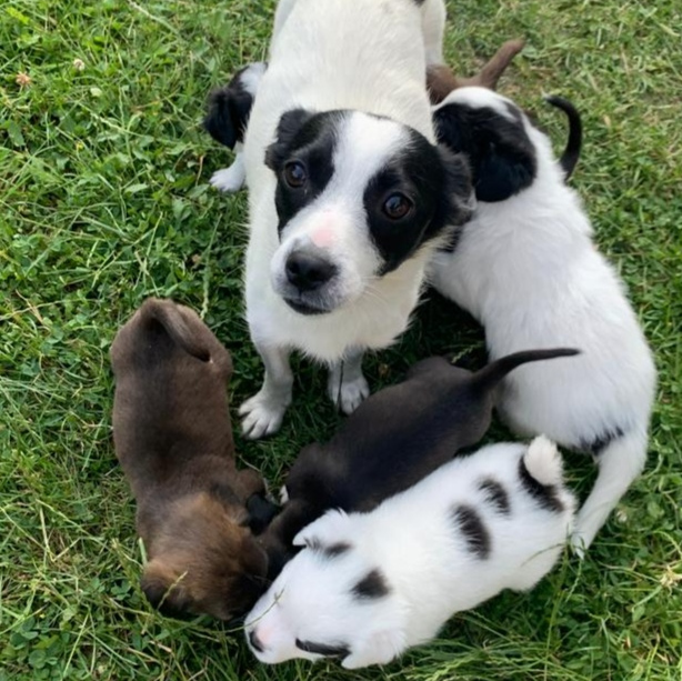 Auch Gerhild nimmt immer wieder Notfellchen bei sich auf. Sie kümmert sich neben anderen Hunden im Moment auch um eine Hundemama mit ihren Welpen.